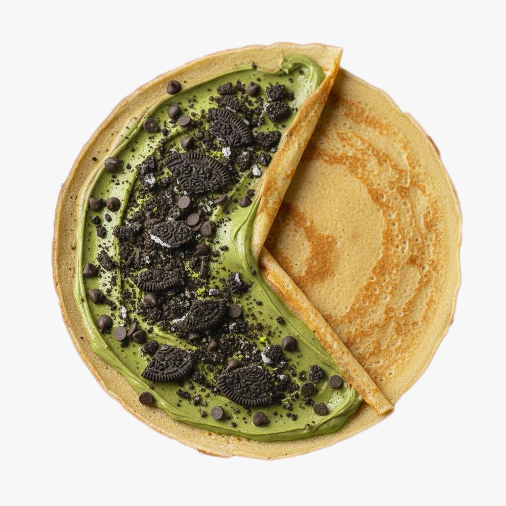 Crema de pistacho, oreo y pepitas de chocolate negro.